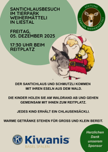 Der Santichlaus und Schmutzli kommen mit Eseln aus dem Wald.